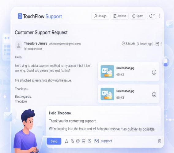 Manage all support emails in one organised inbox.